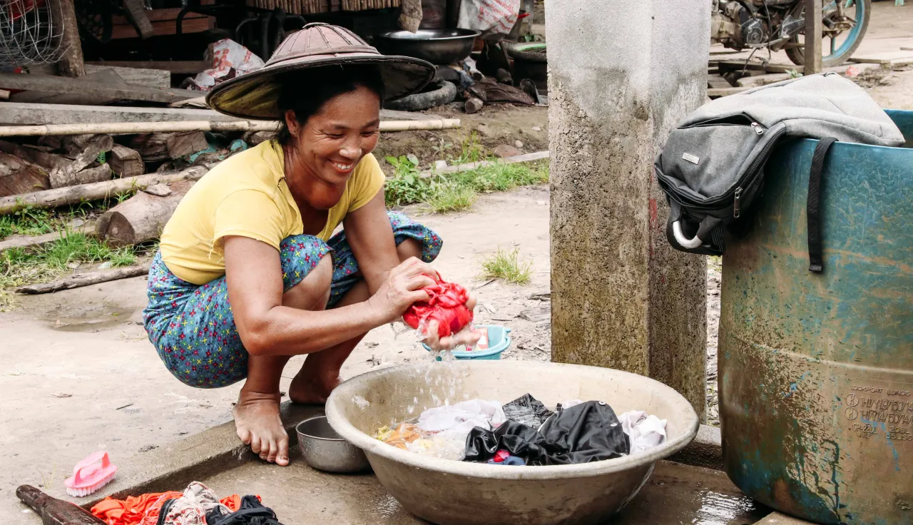 Mary Lu Pan, a young mother, says, "Having a tap just across my home allows me to do the washing while my infant daughter naps. It saves me so much time and effort!"