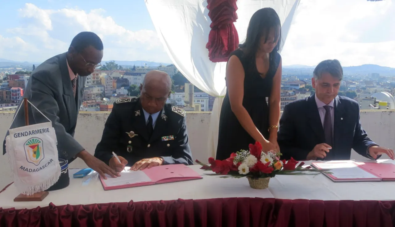 Madagascar's Department of State for the Gendarmerie and the ICRC signed a memorandum of understanding on 13 May 2015 at a ceremony at the offices of the ICRC regional delegation for the Indian Ocean.