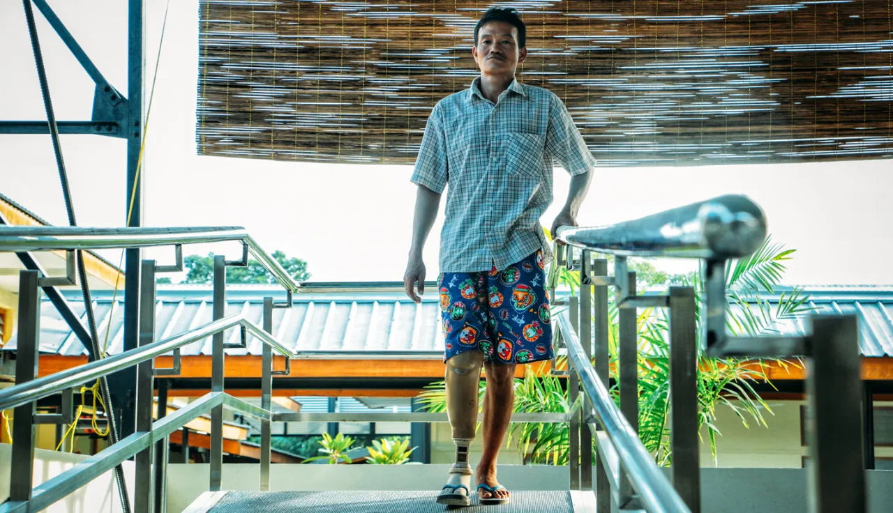 "Seeing him benefit from the medical help, I also felt encouraged and visited the centre. It was hard wearing a prosthesis initially... it certainly takes time to get used to it. But now I'm in the process of learning to walk and have gotten comfortable with the idea of an artificial leg," says Sang.
