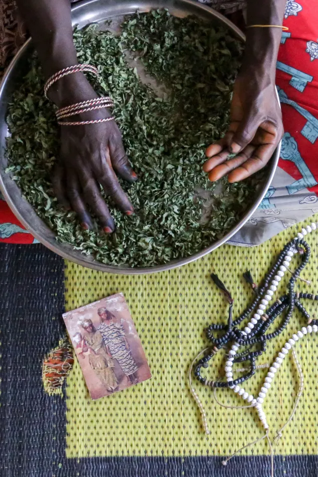 Hadiza keeps her sister’s picture by her side constantly. Her sister Kaltum disappeared, with her husband and their children, in 2012. Hadiza’s prayer beads help her cope with the doubt concerning their fate.