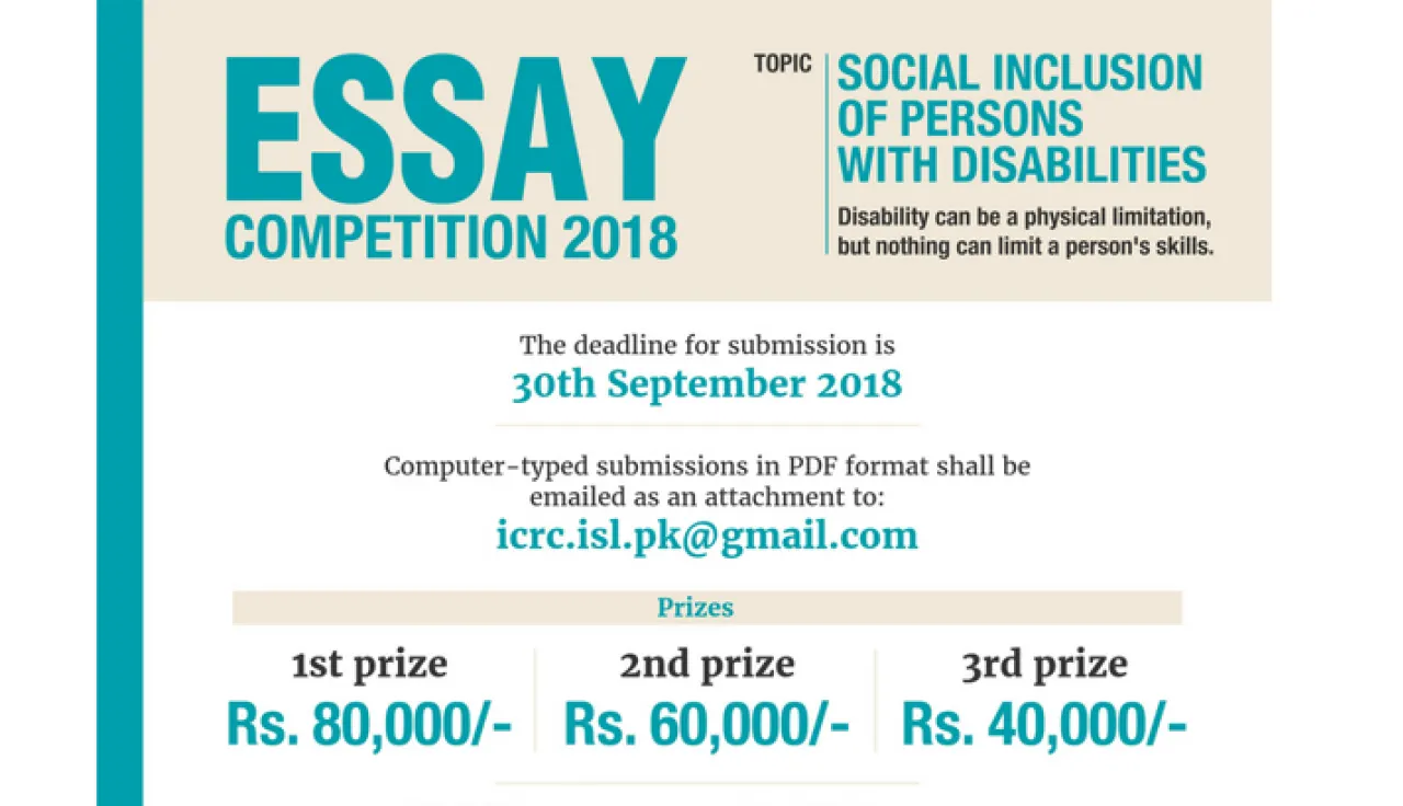 The International Committee of the Red Cross (ICRC) Pakistan is pleased to announce the 5th edition of the annual Bilingual Essay Writing Competition. The topic for this year's competition is "Social Inclusion of Persons with Disabilities".