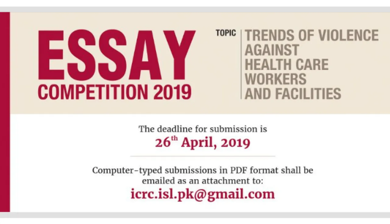 The International Committee of the Red Cross (ICRC) in Pakistan brings to you the 6th edition of the annual Bilingual Essay Writing Competition. In line with the theme of protection of human life and dignity, the topic of this year's competition is "Trends of violence against health-care workers and facilities".