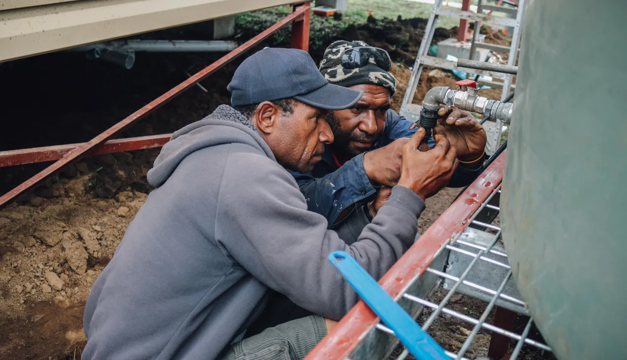 An ICRC team carries out construction work at Uma Clinic in Kagua-Erave, Southern Highlands Province. Reuben Tabel / ICRC