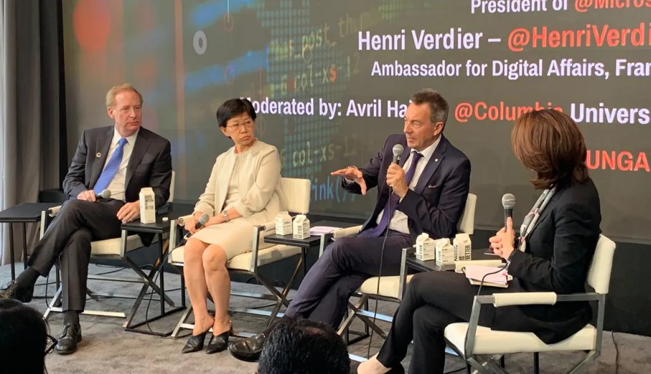 In partnership with Microsoft and its president and chief legal officer, Brad Smith, the ICRC convened a discussion titled "Advancing Digital Trust, Security and Cooperation" on Monday at a side event to the 74th Session of the UN General Assembly. Maurer and Smith were joined by the UN High representative for Disarmament Affairs, Izumi Nakamitsu, and Avril Haines of Columbia University.