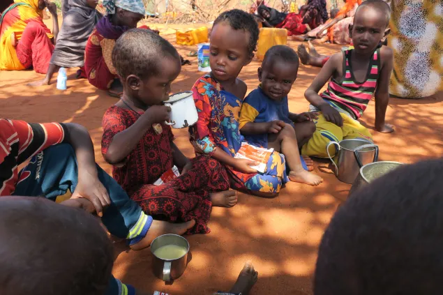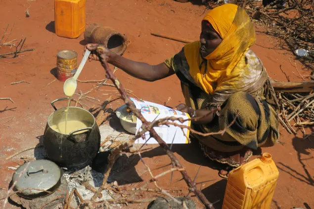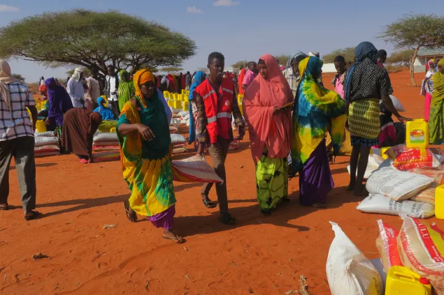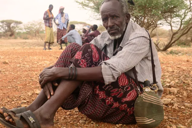 Abdullahi Abdrahman waits for the food distribution exercise to begin. The 70-year-old walked over 200km in the past months in search of food, water and pasture for his family and remaining frail livestock. He has lost 450 goats, cattle and sheep since the beginning of the drought. Abdullahi is one of the 90,000 people who received food in Galgaduud region.