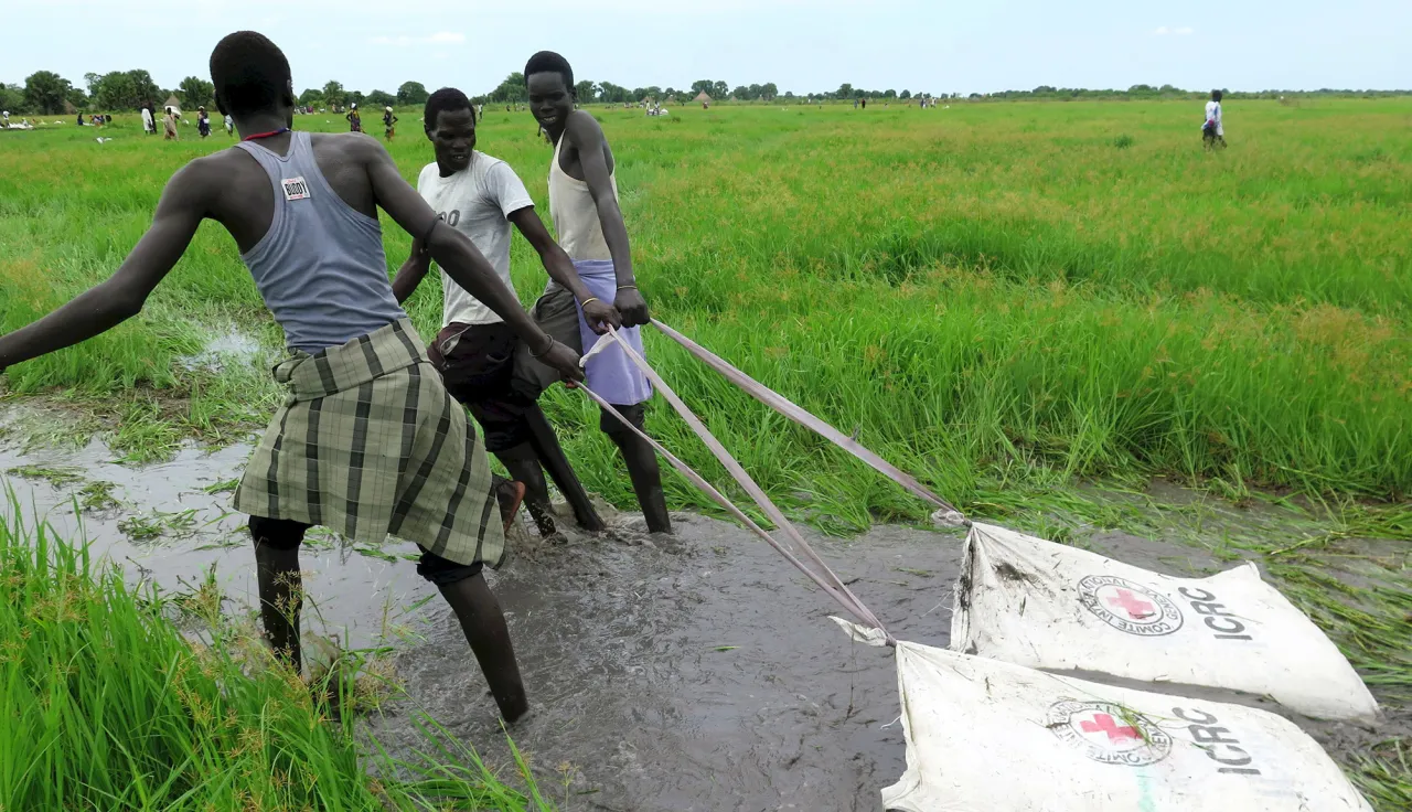 The ICRC is currently airdropping and distributing food rations in Toch, South Sudan, a remote area in Jonglei state – accessible only by boat or aircraft – where 1,500 of the 3,500 families registered by the ICRC for assistance are displaced.