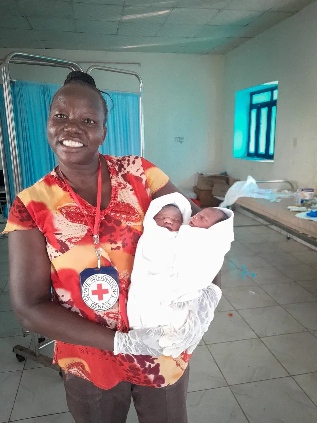 When Grace* arrived at the Maiwut Primary Health Care Centre in South Sudan's northeast region she was in extreme pain and distress. Little did she know that she was actually in labour and about to give birth to not one, but two babies. Fortunately, Annet Monoji Juan, a midwife with the International Committee of the Red Cross, was on duty to help deliver the babies and save Grace's life.
