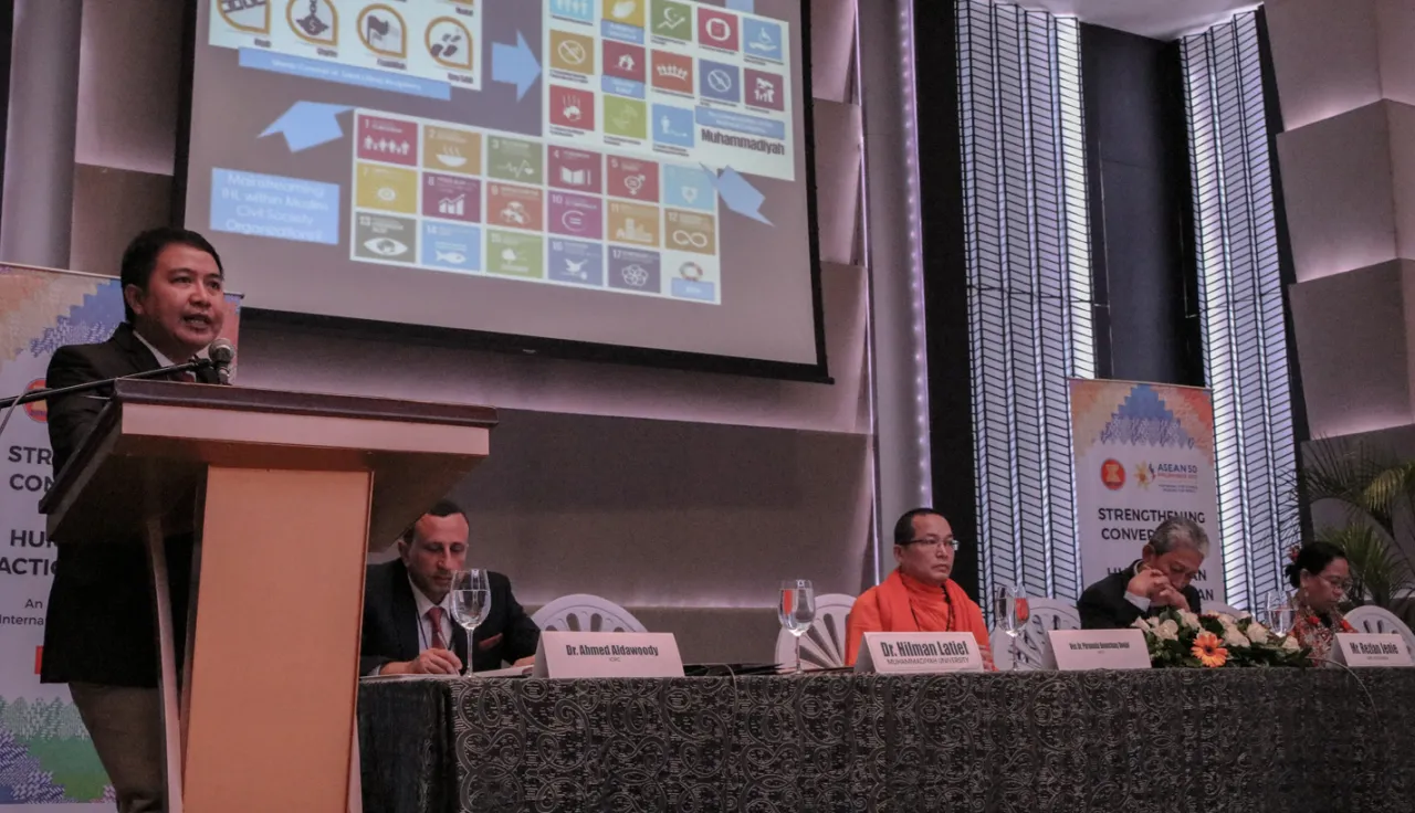 The symposium gathered members of ASEAN AIPR Governing Council and Advisory Board, Ambassadors of ASEAN member states, ASEANAPOL, NGOs, UN agencies, international organizations, think-tanks, universities, religious organizations, community leaders and representatives of the International Red Cross and Red Crescent Movement. The participants explored the convergences of international humanitarian law, humanitarian principles, religious norms and customary practices in order to address specific humanitarian and protection challenges within ASEAN.