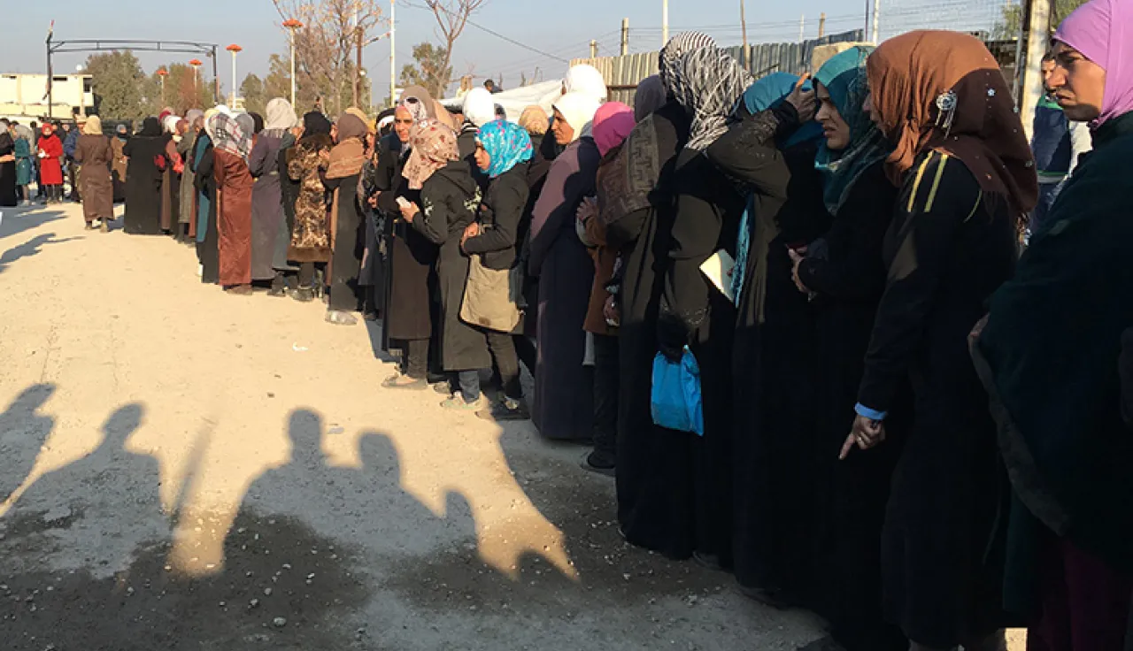Thousands of people waited for hours on the edge of the buffer-zone separating the warring parties, where the food deliveries were made. Moadamiyeh is one of the many towns that is under siege in Syria.