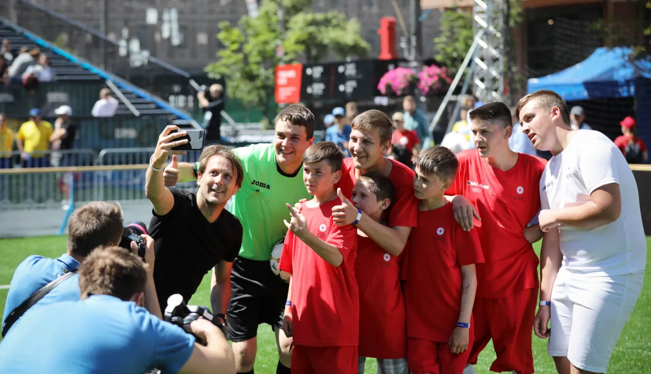 On 26 May 2018, Kyiv hosted the UEFA Champions League Final. The day held special significance for ten children from the Donbas. On the morning of the big game, they enjoyed a football match of their own: a five-a-side game on the pitch set up in the Champions Festival in the heart of the city. They were joined by football star and former Spain international player, Gaizka Mendieta.
