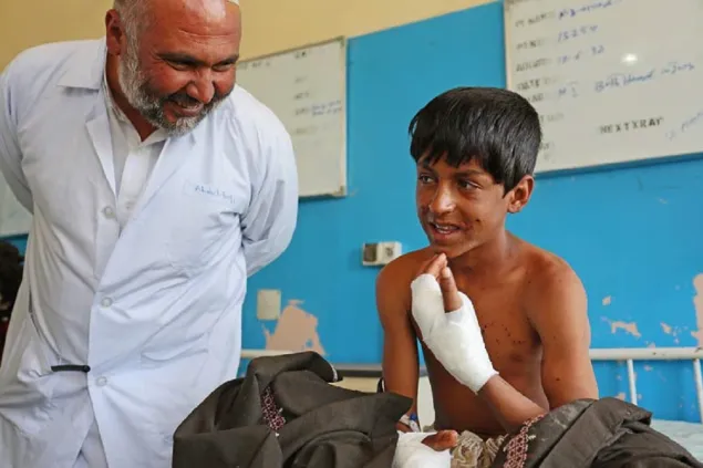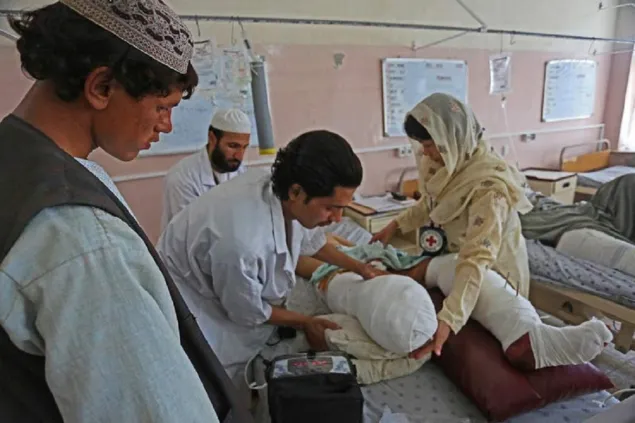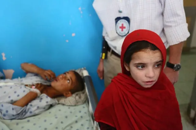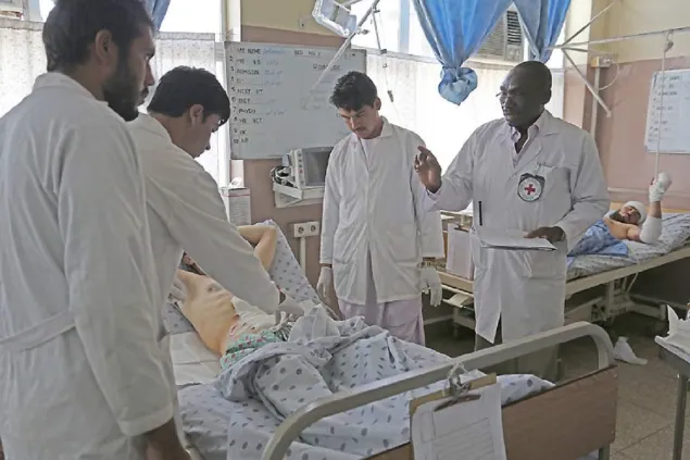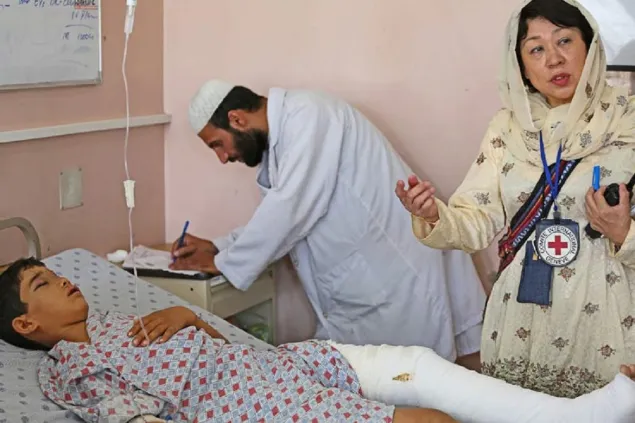 El enfermero Shafik acuesta a una víctima de mina antipersonal en una camilla de la unidad de terapia intensiva, asistido por Akiko Ito, directora del proyecto del CICR en el hospital. La prestación de primeros auxilios en forma oportuna cuando ocurre un accidente, sobre todo en las zonas rurales, donde los servicios de salud son escasos, puede salvar vidas. Para realizar su trabajo adecuadamente, los socorristas deben contar con la capacitación y el material necesarios. Además, se les debe garantizar el acceso sin obstáculos hasta quienes necesitan de su ayuda.