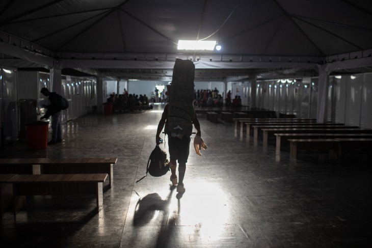 Refugio de migrantes en Pacaraima, Brasil.