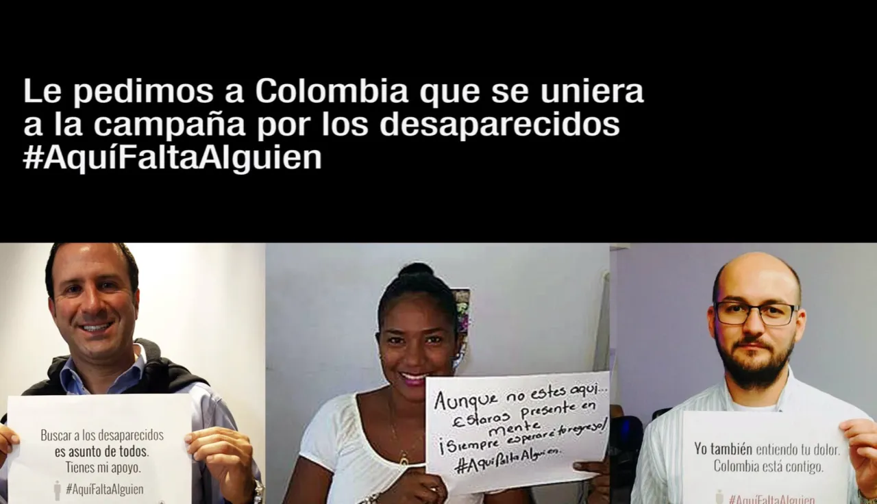 Este es un breve resumen de la campaña #AquíFaltaAlguien que la delegación en Colombia del Comité Internacional de la Cruz Roja (CICR) realizó para insistir en la necesidad de ofrecer apoyo y solidaridad a los familiares de las personas desaparecidas.