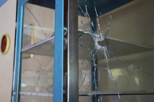 En regiones como el Catatumbo (Norte de Santander) el conflicto armado sigue afectando a la población civil. Las secuelas de los enfrentamientos se ven hasta en los negocios de sus habitantes, como sucede en esta farmacia ubicada en el municipio de Las Mercedes.