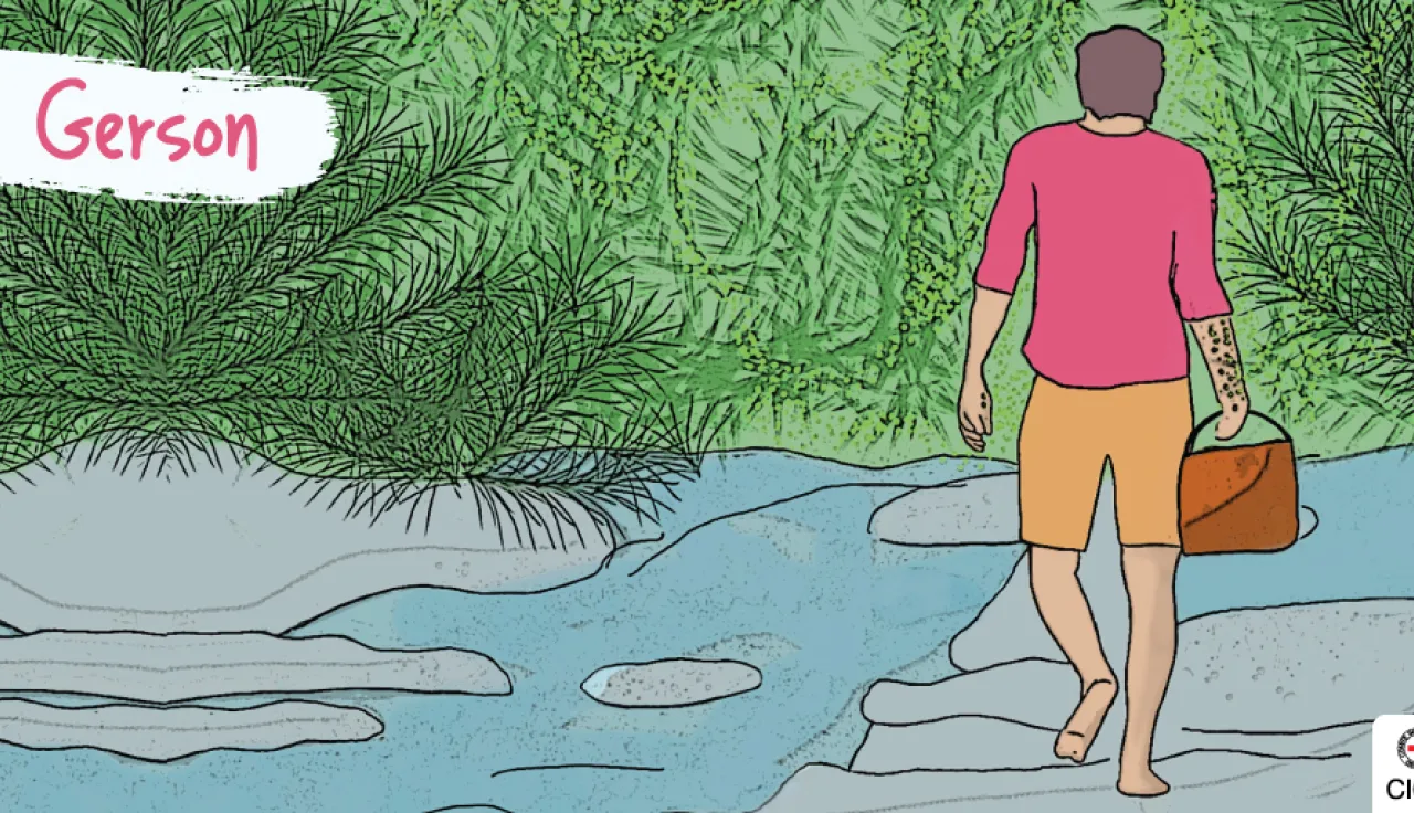 [Gerson Ortega]: Eran como tipo 7 de la mañana, íbamos para un trabajo y había que cruzar una quebrada, donde había que recoger agua para llevar al trabajo. Al lado había una poceta donde se recogía el agua para no ensuciarla, a mí me pidió el favor uno de los muchachos que iba conmigo, que hiciera el favor y recogiera yo el agua.