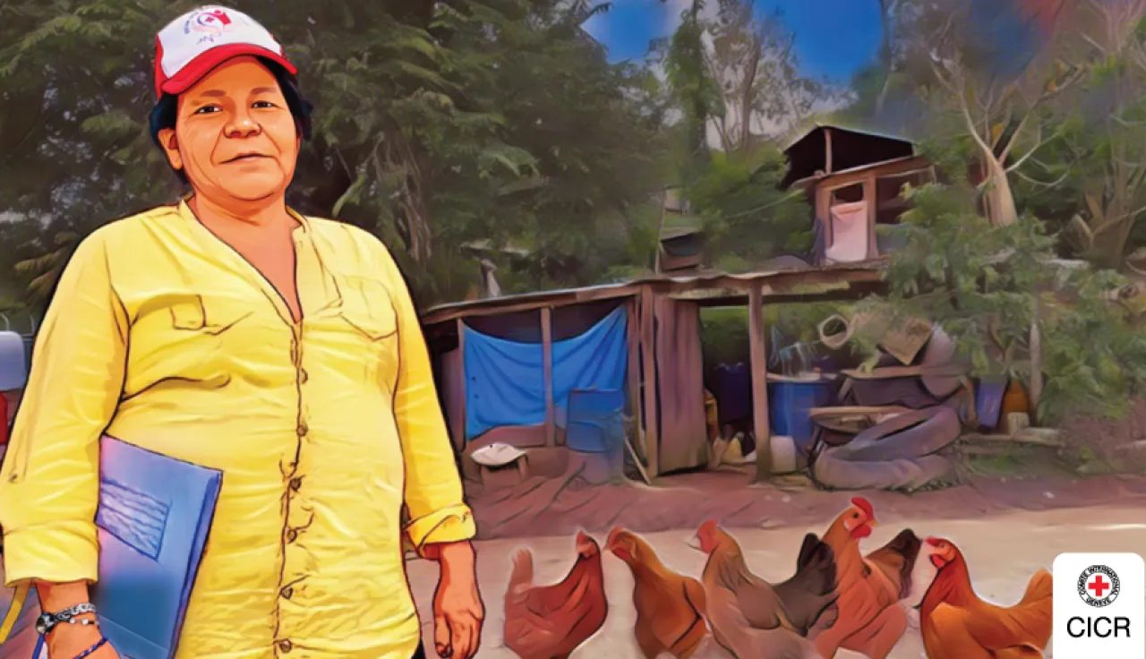 [Luis Oswaldo Mancilla]: Soy encargado de la gestión de proyectos de la unidad de seguridad económica del Comité Internacional de la Cruz Roja. Aquí, con la comunidad de Los Andes, con el Comité de Mujeres lo que quisimos hacer fue apoyar para fortalecer los procesos de seguridad alimentaria que traía el Comité. Este es un Comité conformado por 31 mujeres, hicimos un ejercicio de diagnóstico participativo con ellas donde nos reunimos e identificamos cuáles eran sus principales problemáticas, las principales afectaciones en términos de seguridad económica y alimentaria, y decidimos conjuntamente como una de las alternativas, poder establecer unidades de producción con gallinas criollas que pudieran tener huevos, que pudieran tener carne, que pudieran tener pollos disponibles para mejorar sus condiciones de alimentación.