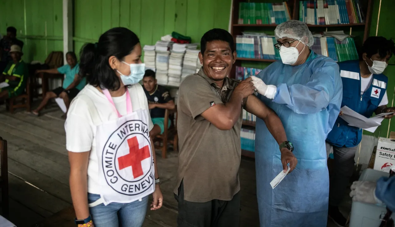 El Movimiento Internacional de la Cruz Roja y de la Media Luna Roja, con el liderazgo de la Cruz Roja Peruana (CRP), ha articulado esfuerzos con el Minsa y las organizaciones indígenas para propiciar el diálogo comunitario, con enfoque intercultural, para el diseño conjunto de intervenciones, la entrega de información y la promoción de la vacunación contra la COVID-19 a la población indígena que habita esas zonas de difícil acceso.