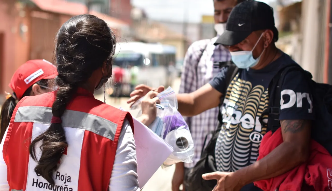 La CRH, cumpliendo su rol como auxiliar de los poderes públicos en temas humanitarios y en estrecha coordinación con el Instituto Nacional de Migración y la Secretaría de Relaciones Exteriores de la República de Honduras, atiende las necesidades de las personas migrantes y retornadas mediante respuestas humanitarias y programas de desarrollo que ofrecen atención primaria en salud, apoyo psicosocial artículos de higiene, acceso a alimentación y agua y llamadas telefónicas gratuitas para contribuir a mantener el contacto familiar y prevenir desapariciones.