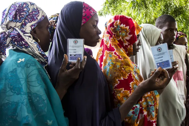 El registro es uno de los aspectos principales durante las distribuciones. El personal del CICR comprueba las identificaciones de las viudas y toma sus huellas digitales para asegurarse de que reciban el paquete de alimentos el día asignado. Esto se hace para evitar las multitudes.