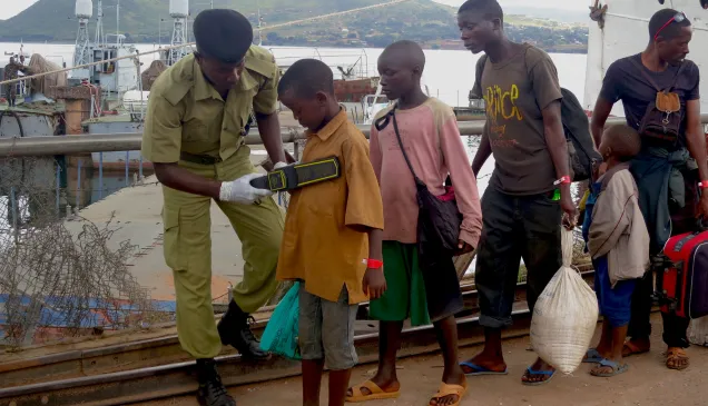 Las mujeres y los niños son transportados en una embarcación por separado y luego, en el barco, se los ubica en un área diferente de la de los hombres. Es difícil abordar la embarcación en medio del oleaje del lago Tanganyika. Sin embargo, socorristas capacitados a bordo de cada embarcación velan por que todos lleguen a salvo a Kigoma.