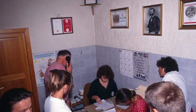 Les civils ont souffert dans toute la Bosnie-Herzégovine. Sur cette photo, une aide d’urgence est distribuée aux personnes qui ont fui les combats à Banja Luka et ont cherché refuge à Bijeljina.