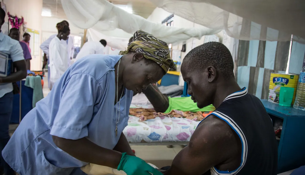 « J'ai commencé en 1991 à Kapoeta et j'ai rejoint le Comité international de la Croix-Rouge (CICR) à l'Hôpital militaire de Juba en 2013 », explique Rosemary. « Je me souviens que, lorsque le CICR a emménagé ici, la salle commune était pleine d'herbes et de terre. Nous avons dû creuser pour tout enlever et faire place nette. »