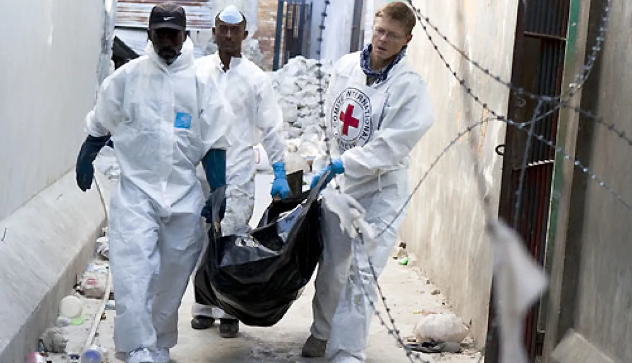 Après une catastrophe, naturelle ou d'origine humaine, il importe que les restes des personnes décédées soient collectés en temps opportun, bien gérés et, dans l'idéal, identifiés. C'est capital. En cas d'effondrement des infrastructures locales, cela peut être particulièrement difficile. À cette fin, le CICR apporte un soutien matériel, des conseils et une formation, aux autorités locales et aux premiers intervenants. La formation et les conseils fournis par le CICR permettent aux premiers intervenants de recueillir et d'enregistrer des informations qui accroîtront la probabilité d'identifier les morts. Le fait de savoir que les restes de leurs proches ont été correctement traités, avec la dignité qui leur est dû, peut également être une source de réconfort pour les familles.