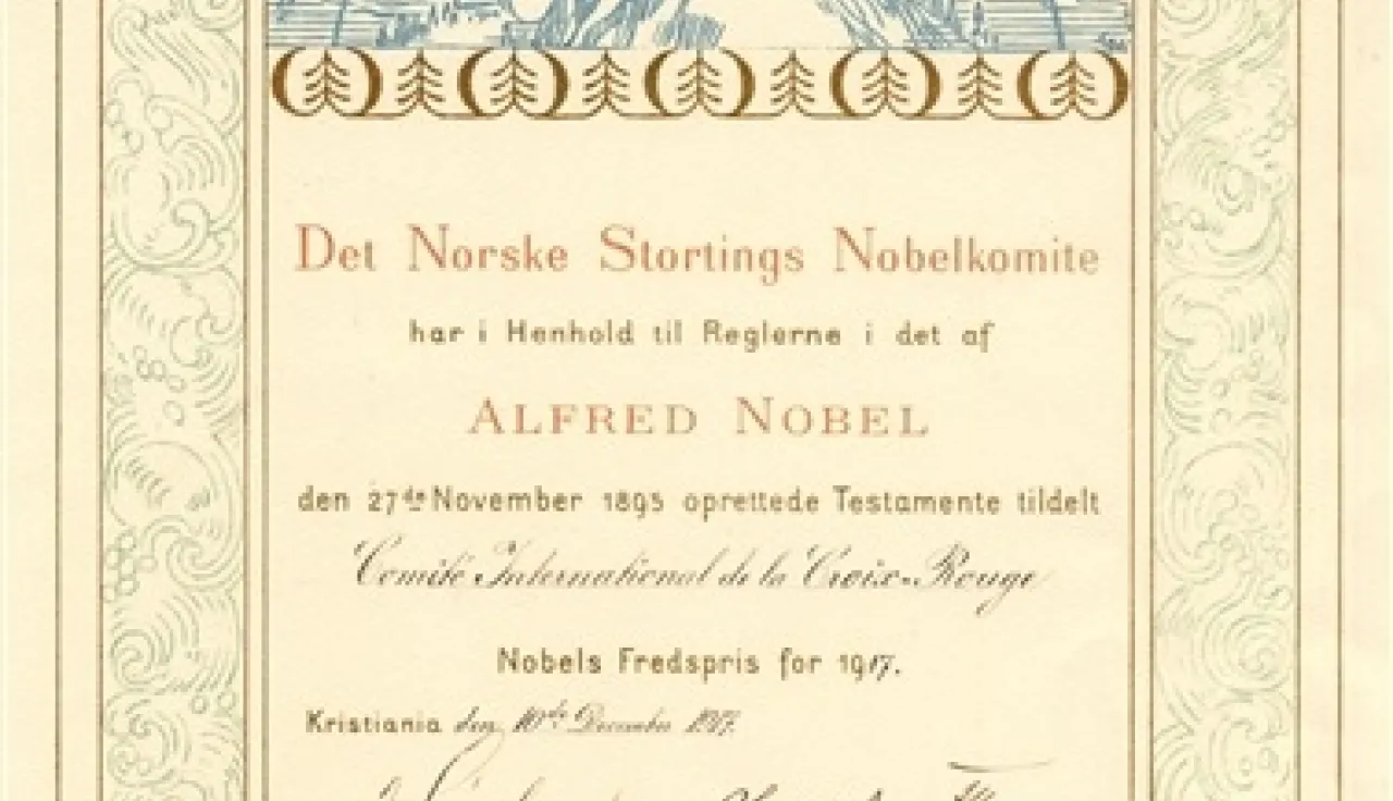 Le premier Prix Nobel de la Paix fut décerné à Henry Dunant, fondateur de la Croix-Rouge, dont la vie entière avait été animée par un sentiment humanitaire passionné. Par la suite, le CICR fut désigné à trois reprises comme lauréat du Prix Nobel de la Paix, en hommage à son action humanitaire pendant les deux conflits mondiaux, en 1917 et 1944, puis en 1963, conjointement avec la Fédération internationale des Societés de la Croix-Rouge et du Croissant-Rouge.