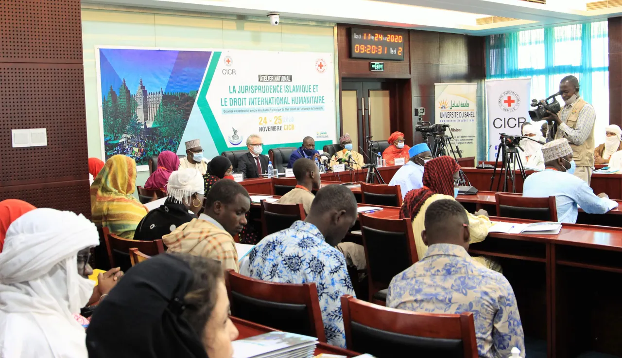 Organisé en partenariat avec l'Université du Sahel, le Haut Conseil Islamique du Mali et la Croix-Rouge malienne, l'atelier national sur le droit international humanitaire (DIH) et la jurisprudence islamique a réuni les 24 et 25 novembre 2020 à Bamako d'éminents érudits musulmans, imams, universitaires, experts en droit islamique et en DIH venus de plusieurs régions du Mali. Les participants ont échangé sur les similitudes et les différences entre le droit international humanitaire (DIH) et la jurisprudence islamique, ainsi que sur des questions humanitaires concrètes telles que la protection de la mission médicale.