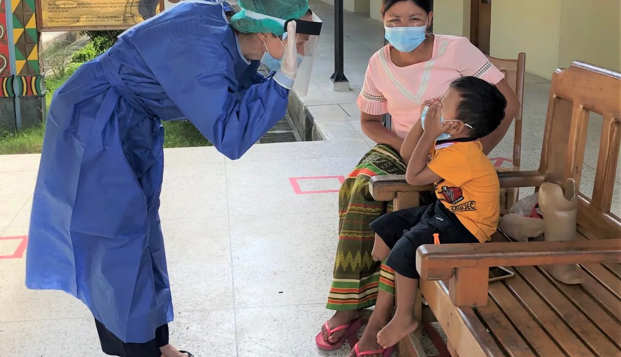 Né avec une malformation du membre inférieur, Htet Oo a reçu sa première prothèse en 2018. « On devait la faire remplacer par une nouvelle jambe artificielle, mais le centre a dû fermer à cause de la pandémie de Covid-19. On commençait à s'inquiéter parce que son ancienne prothèse ne lui allait plus très bien », explique Daw Tin Zaw Myint, la mère de Htet Oo. Alors dès que le centre a rouvert, dans le strict respect des consignes sanitaires liées au Covid-19, la famille s'est empressée de s'y rendre pour que le petit garçon bénéficie de l'aide dont il avait besoin.