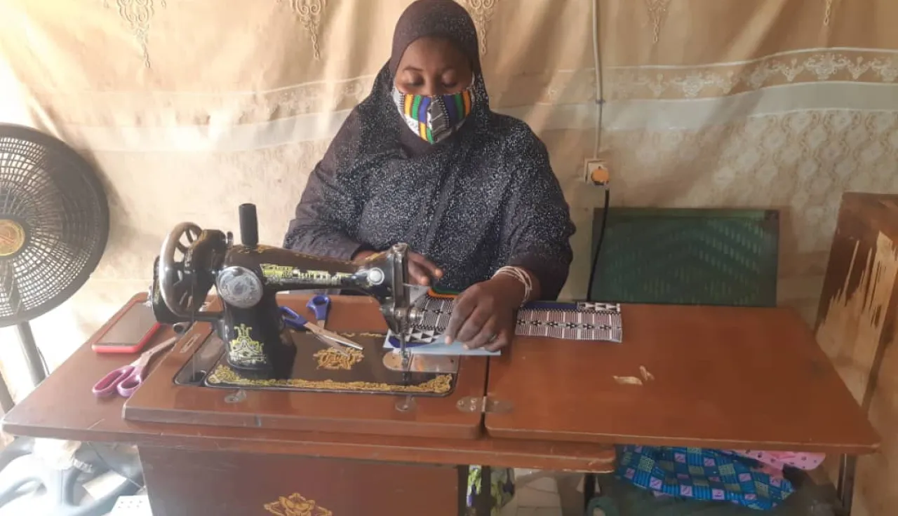 En coopération avec les équipes du CICR, elle s'emploie aujourd'hui à lutter contre la pandémie et promouvoir l'inclusion socio-économique des personnes handicapées. À ce jour, elle a confectionné 4 000 masques artisanaux et formé 22 personnes. En tout, le programme a permis de former plus de 250 personnes handicapées, majoritairement des femmes, à la fabrication de masques en tissu.