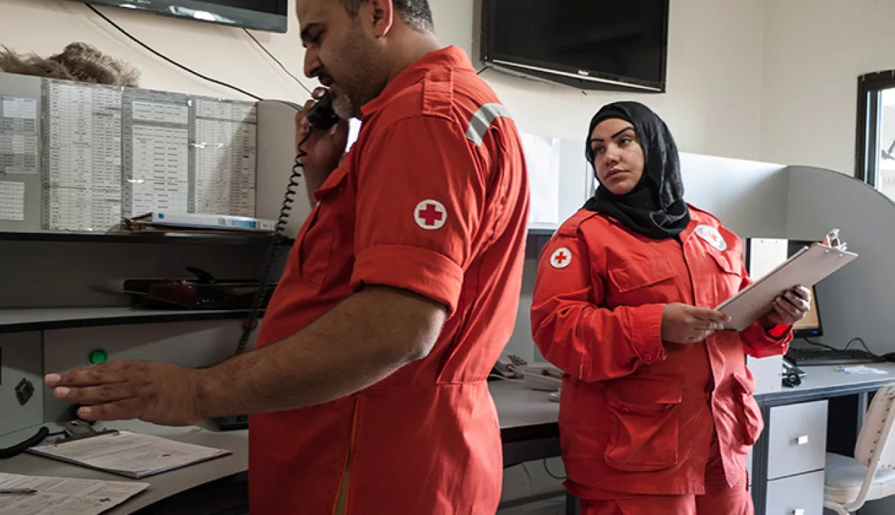 Jounieh, Liban. Deux ambulanciers sur le point de transporter à l'hôpital un résidant. CC BY-NC-ND / CICR / D. Revol