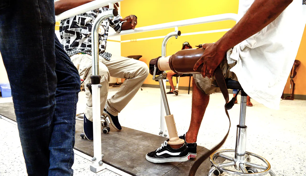 Le nouveau département de réadaptation fonctionnelle de l'Hôpital général de Kinshasa a été construit et équipé par le Comité international de la Croix-Rouge (CICR), en collaboration avec les autorités congolaises. Le CICR a également financé la formation à l'étranger de quatre techniciens congolais pour des études diplômantes spécialisées. « L'objectif final est que cet établissement devienne le centre national de référence en RD Congo. » affirme Michel Deffontaines, responsable du programme de réadaptation physique au CICR dans le pays.