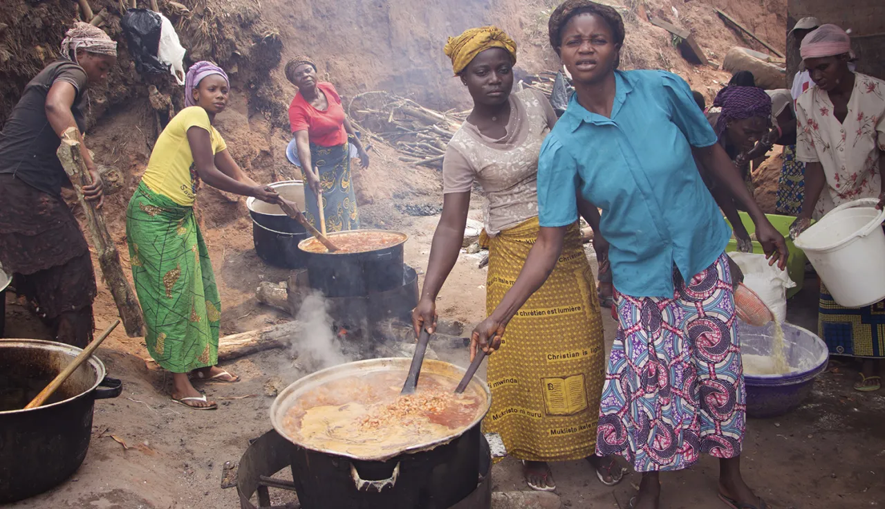 « Sous la supervision des volontaires de la Croix-Rouge, les déplacés se sont organisés pour cuire et distribuer les aliments à près de 9 000 personnes tous les jours », précise Calvin Mastaki, responsable de l'équipe CICR à Kikwit « Des personnes de bonne volonté nous ont cédé des terrains pour y aménager six cuisines collectives ».