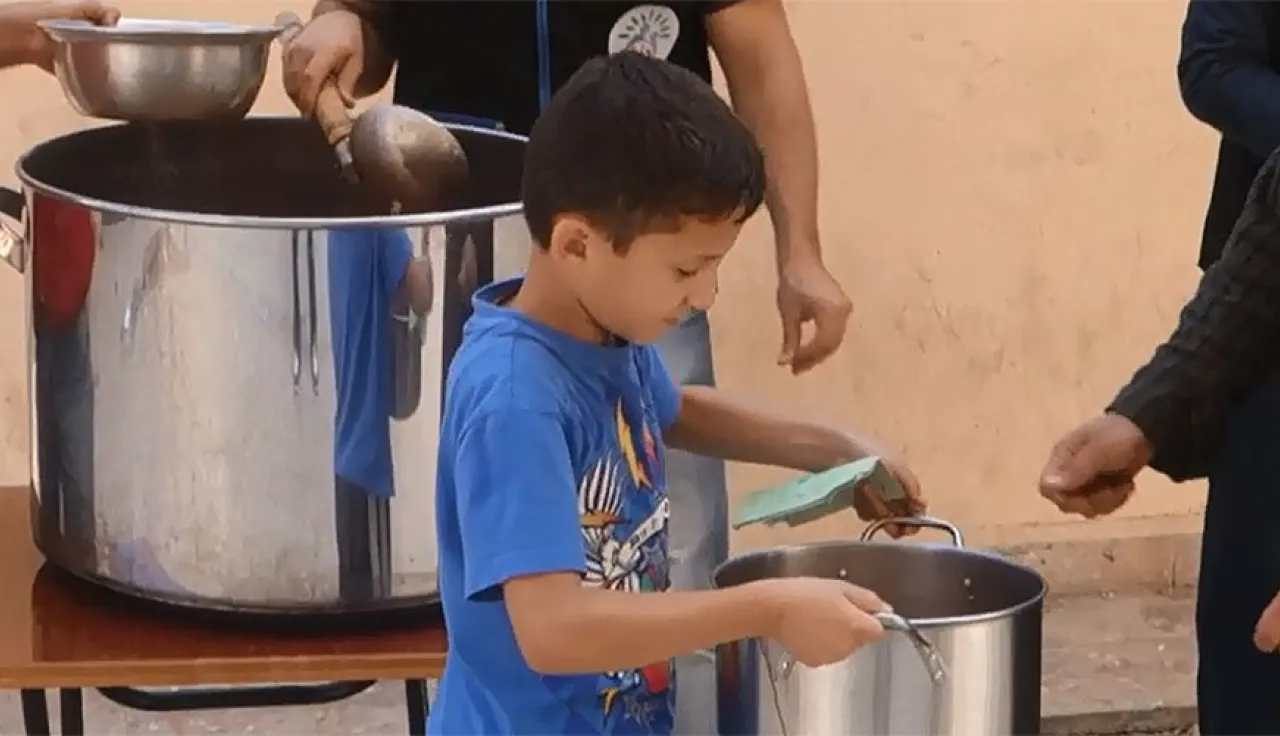 La cuisine collective d'Al-Hamra, dans la ville de Homs, a commencé à fonctionner il y a un an en servant des repas à un millier de personnes. Aujourd'hui, cette cuisine offre chaque jour des repas à quelque deux-mille personnes. Elle est gérée par six femmes très dévouées, qui travaillent sans relâche sept jours par semaine de 8 heures du matin à 18 heures du soir. Il leur faut environ trois heures pour préparer les ingrédients, laver et hacher les légumes.