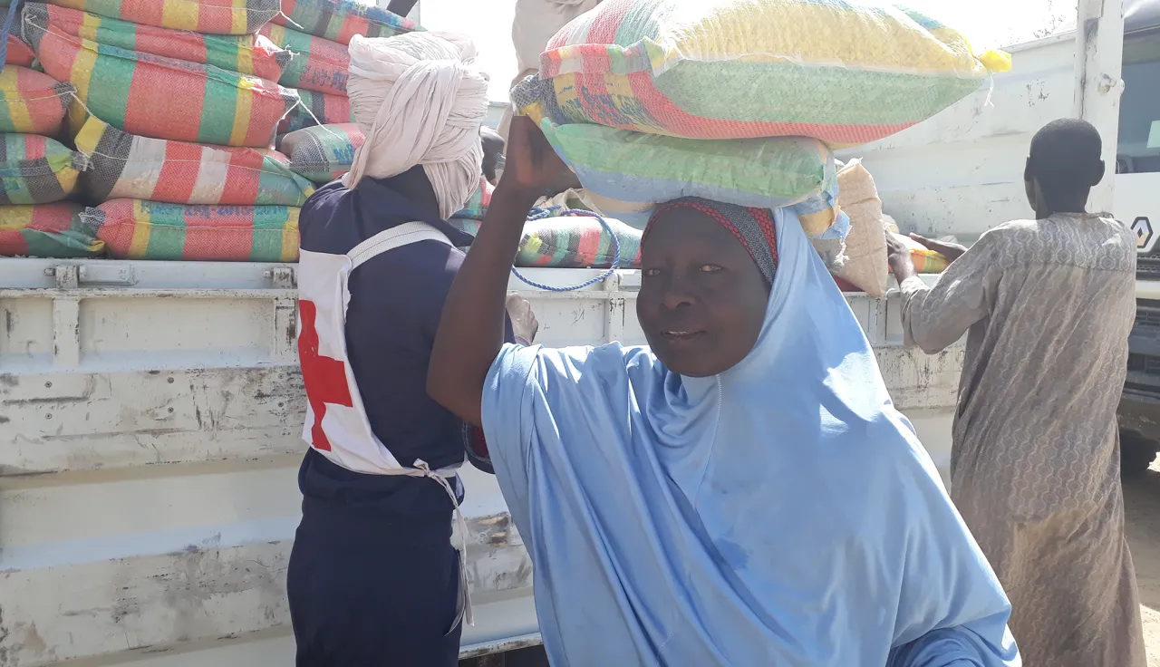 Des personnes déplacées internes de Hougo Fele dans la Province du Lac au Tchad attendant de recevoir des semences et des outils agricoles. CC BY-NC-ND / Taoffic M. TOURE / CICR