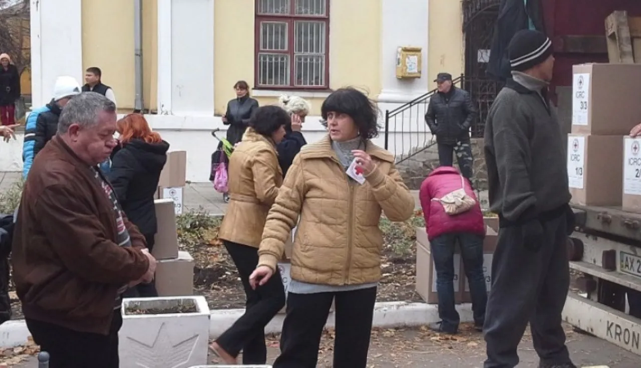 Cerca de mil pessoas na região de Donetsk, entre elas moradores da área afetados pelo conflito e pessoas deslocadas, receberam alimentos e outros itens do CICV.
