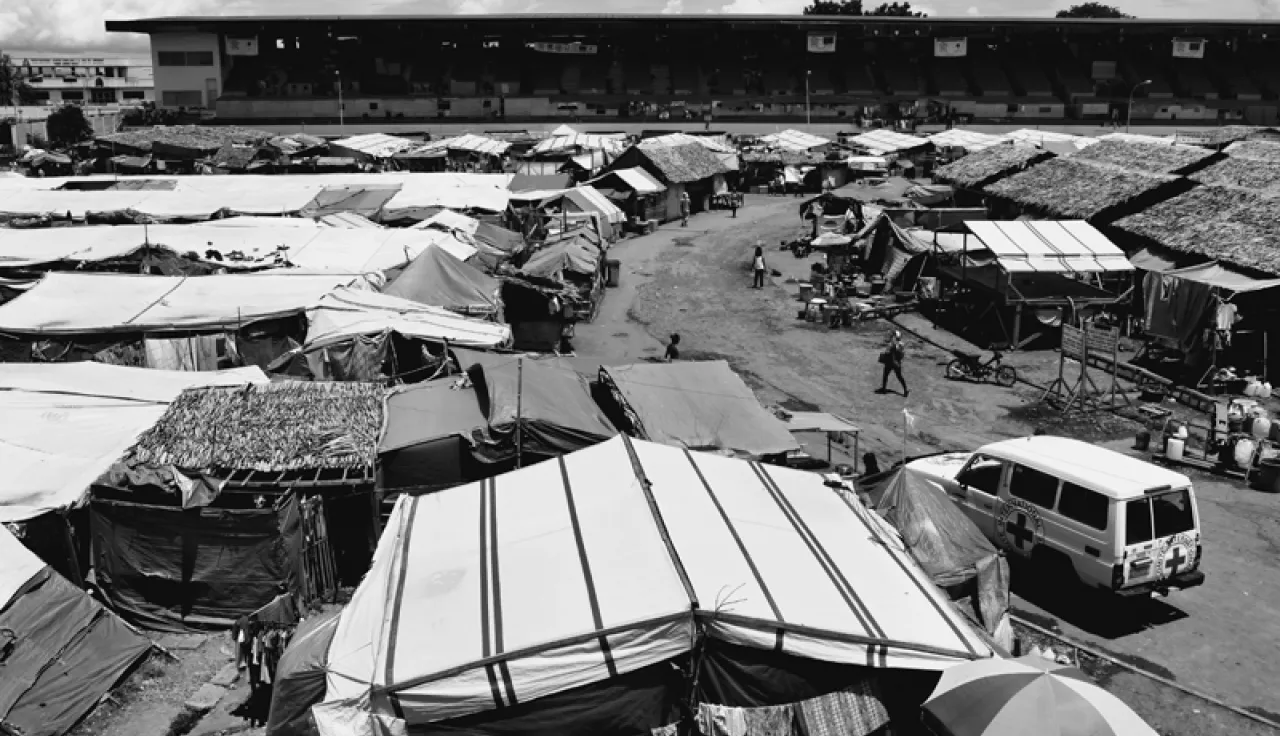 Trabalhando com a Cruz Vermelha Filipina e em conjunto com a agência local de recursos hídricos, o CICV está melhorando o saneamento e o abastecimento de água em vários centros de evacuação e em lugares transitórios. Nos últimos meses, a organização também buscou fortalecer a resiliência das comunidades deslocadas por meio do programa de remuneração por serviços prestados e ajuda financeira livre de condições que beneficiaram quase 50 mil pessoas.
