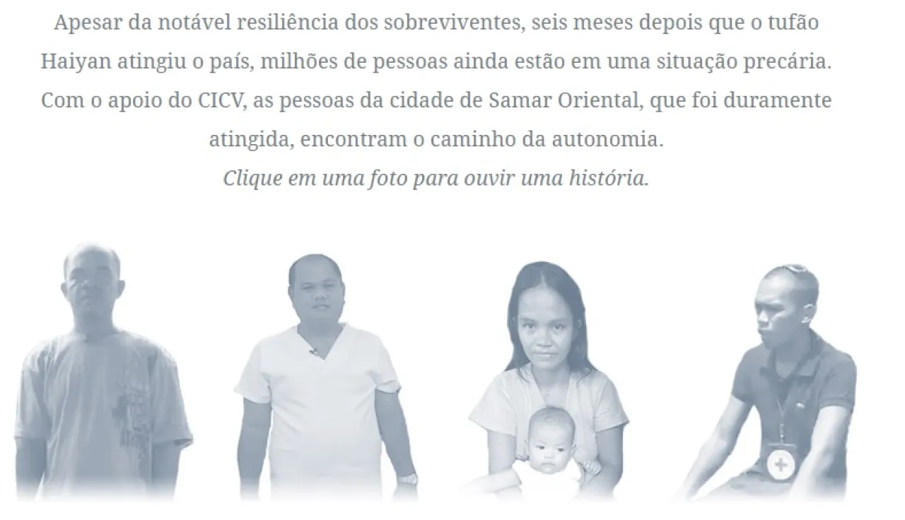 Apesar da notável resiliência dos sobreviventes, seis meses depois que o tufão Haiyan atingiu o país, milhões de pessoas ainda estão em uma situação precária. Com o apoio do CICV, as pessoas da cidade de Samar Oriental, que foi duramente atingida, encontram o caminho da autonomia.