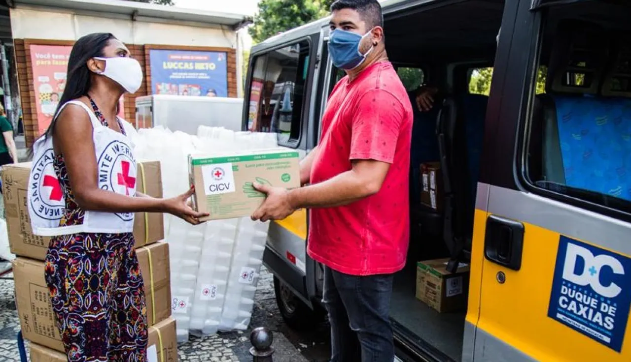 Brasília (CICV) – O Comitê Internacional da Cruz Vermelha (CICV) doou equipamentos de proteção individual (EPIs) e insumos para as Secretarias Municipais de Saúde (SMS) e de Educação (SME) de Duque de Caxias e para a Fundação Oswaldo Cruz (Fiocruz), a fim de apoiar a saúde e o bem-estar dos profissionais de serviços públicos essenciais.