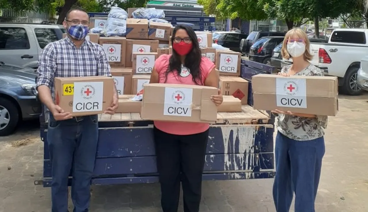 Em maio, o CICV também apoiou a Secretaria de Justiça e Cidadania com doação de máquinas de costura e material para a confecção de máscaras e aventais dentro do sistema prisional do estado. Além disso, recomendações e orientações técnicas relacionadas com a gestão da Covid-19 dentro do contexto penitenciário também têm sido compartilhadas.