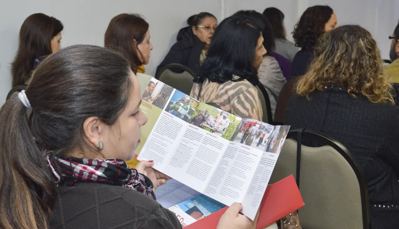 Cerca de 40 gestores e representantes das Secretarias de Saúde, Educação e da Fundação de Assistência Social e Cidadania (FASC) do Município de Porto Alegre (RS) participaram de um treinamento de multiplicadores das ferramentas desenvolvidas pela metodologia de Acesso Mais Seguro (AMS), promovido pela Prefeitura de Porto Alegre e realizada pelo Comitê Internacional da Cruz Vermelha (CICV) entre os dias 30 de maio a 2 de junho.