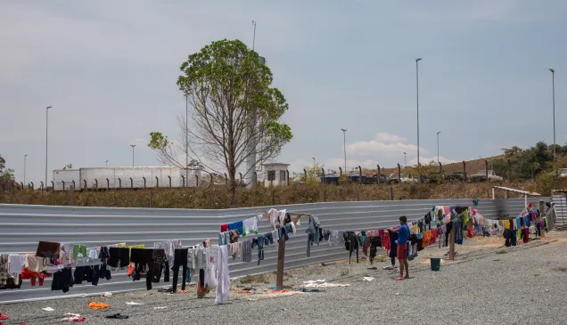 Migrante aguarda atendimento no posto do CICV em Boa Vista, Brasil.