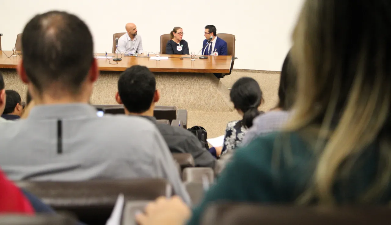 Representantes do CICV apresentam a experiência internacional da instituição em detenção. Foto: Diogo Alcântara/ CICV