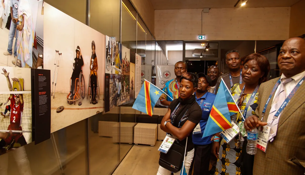 A delegação paralímpica da República Democrática do Congo é composta por quatro atletas, todos atentidos pelo Programa de Reabilitação Física do CICV. Para eles, estar em uma competição de alto nível e ajudar a dar às pessoas com deficiência senso de mérito e dignidade é uma grande vitória. Eles visitaram a mostra de fotos do CICV na Casa da Suiça "Além das Barreiras – a Reabilitação física pelo esporte" e fizeram uma palestra sobre a experiência da RDC.