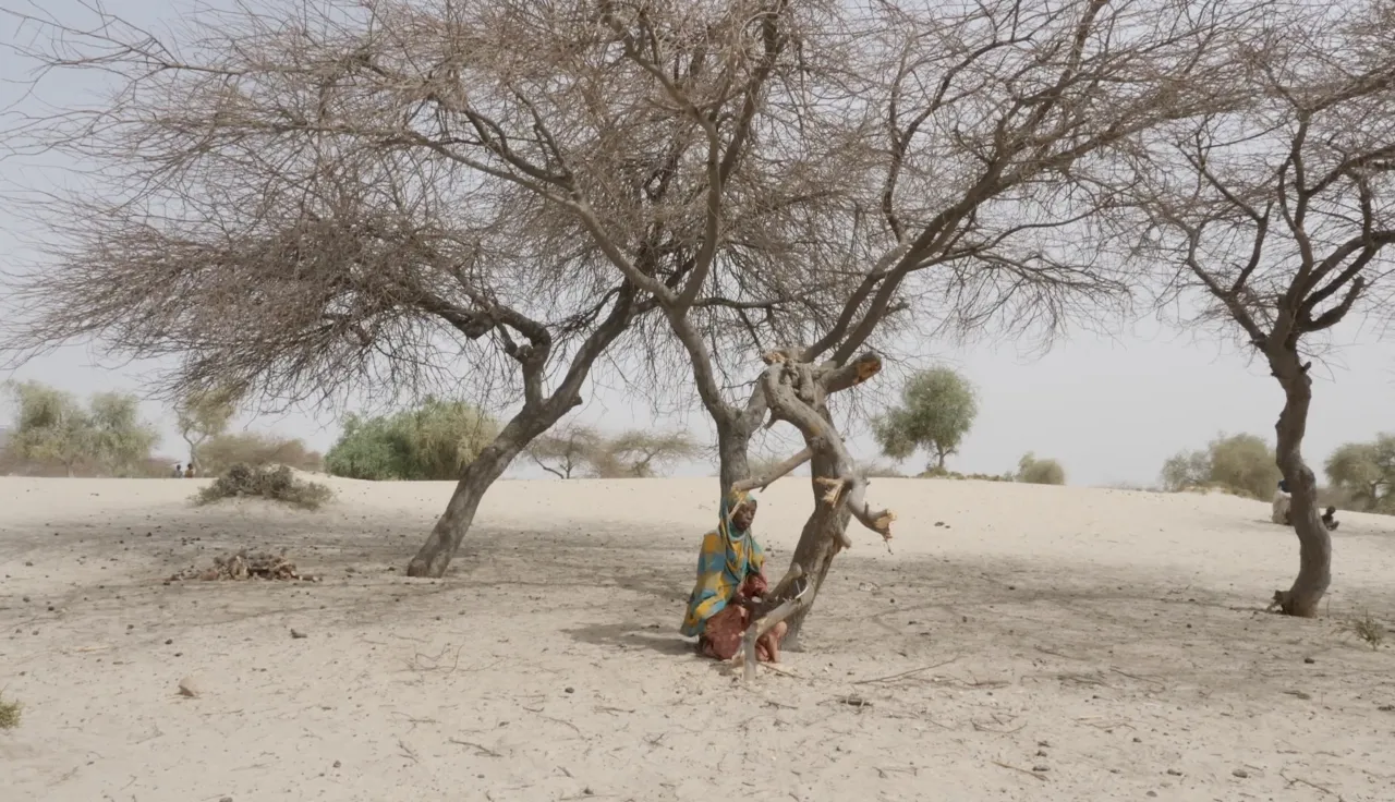 С тех пор, как озеро высохло, из-под земли просачивается горючий газ. Когда он воспламеняется, то уничтожает часть оставшихся деревьев, и это делает почву непригодной для сельского хозяйства. Мусса Мухамаду Туре показывает нам поля, на которых он выращивал растения. «Посмотрите, как изменился цвет нашей почвы. Он красный, он черный, это гранулы. Газ сжег всю землю и деревья ».