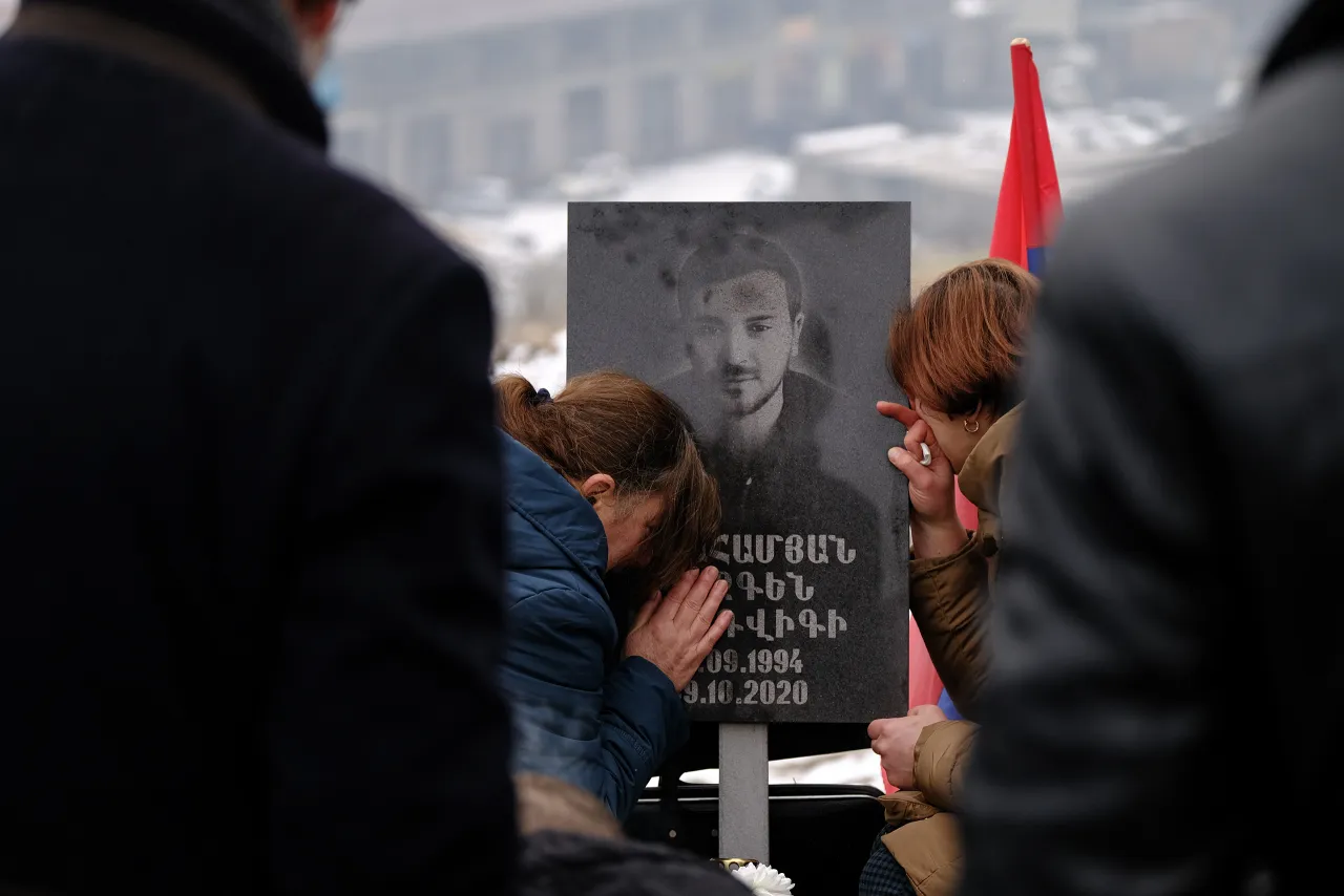 Среди собравшихся — супружеская пара под семьдесят: Людвиг и Зарина Абрамян. Эскалация конфликта в Нагорном Карабахе осенью 2020 г. отняла у них младшего сына; здесь он нашел свое последнее пристанище, как и многие другие, кого постигла та же участь. Каждое посещение кладбища пробуждает множество воспоминаний: и радостных, и скорбных.