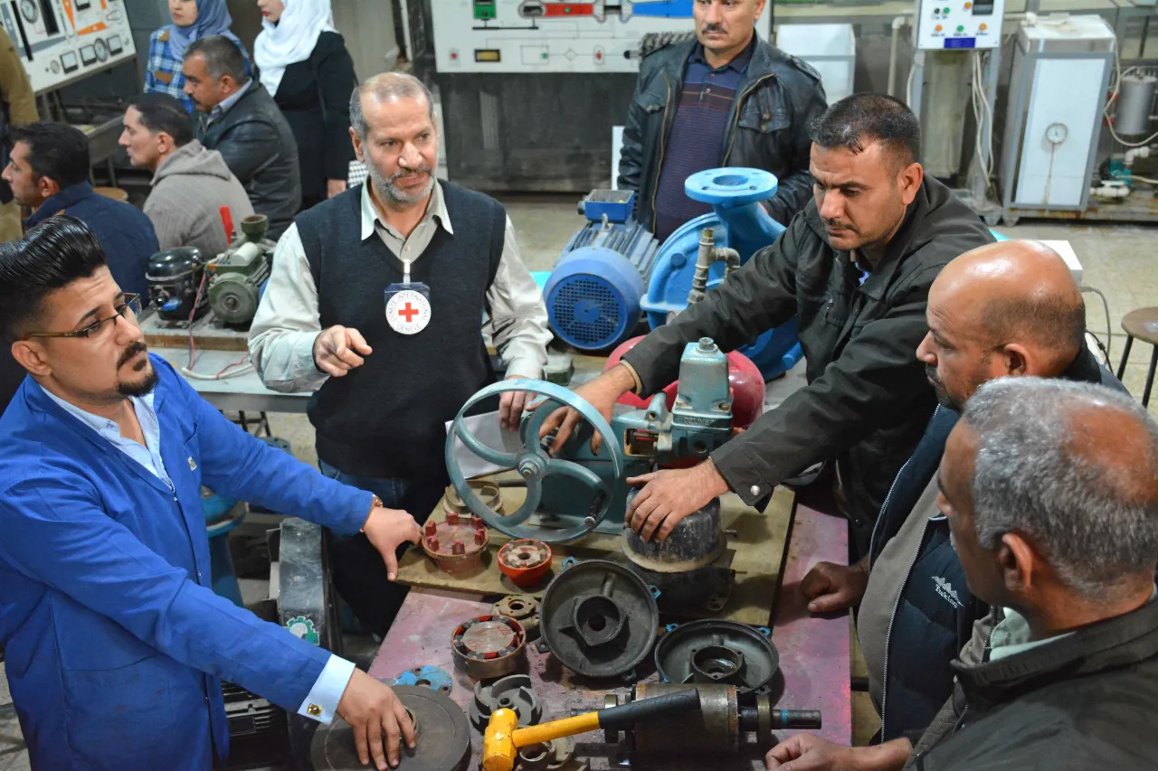 Багдад, Технический университет. По всему миру в районах где происходят или недавно происходили вооруженные конфликты, МККК проводит семинары, чтобы помочь техническим специалистам обеспечивать функционирование водоочистных установок, на которых они работают.