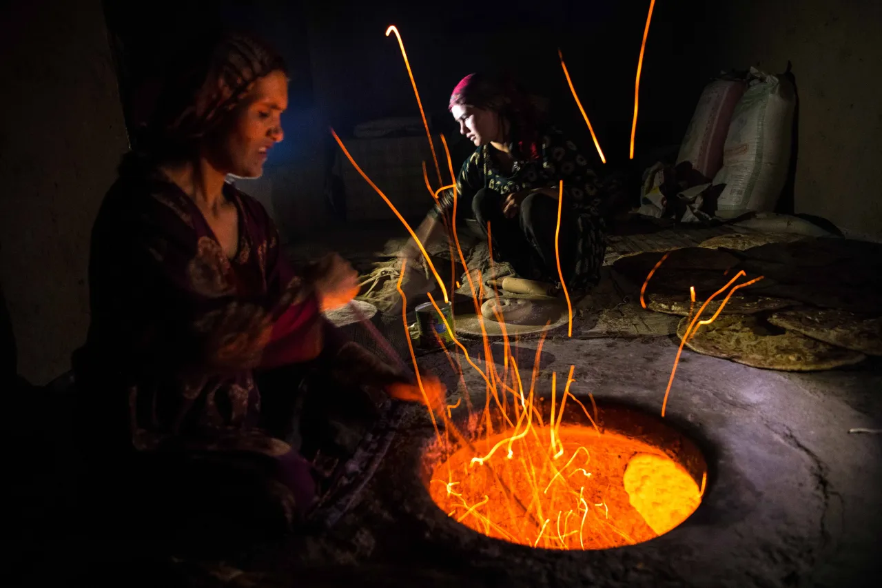 Файзабад (Афганистан). Женщины пекут лепешки на рассвете. В 2022 г. в этой стране после десятилетий вооруженного конфликта число нуждающихся в гуманитарной помощи оценивалось в 24 млн человек (более половины населения), а число страдающих от острой нехватки продовольствия — в 20 миллионов.