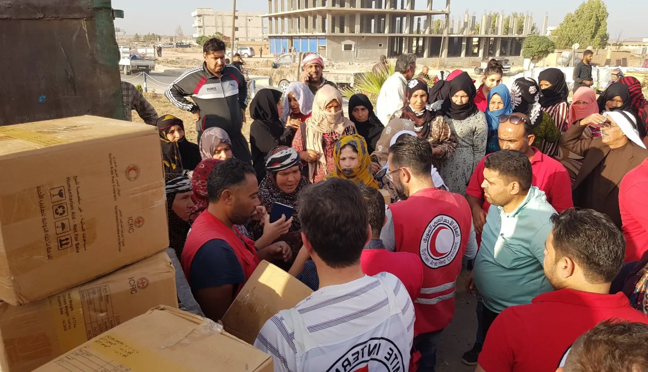 Несмотря на все опасности, с самого начала конфликта Международный Комитет Красного Креста оказывает сирийцам продовольственную и другую жизненно необходимую помощь. МККК и Сирийский Арабский Красный Полумесяц — в числе немногих гуманитарных организаций, которые в состоянии помочь людям, живущим в труднодоступных районах.